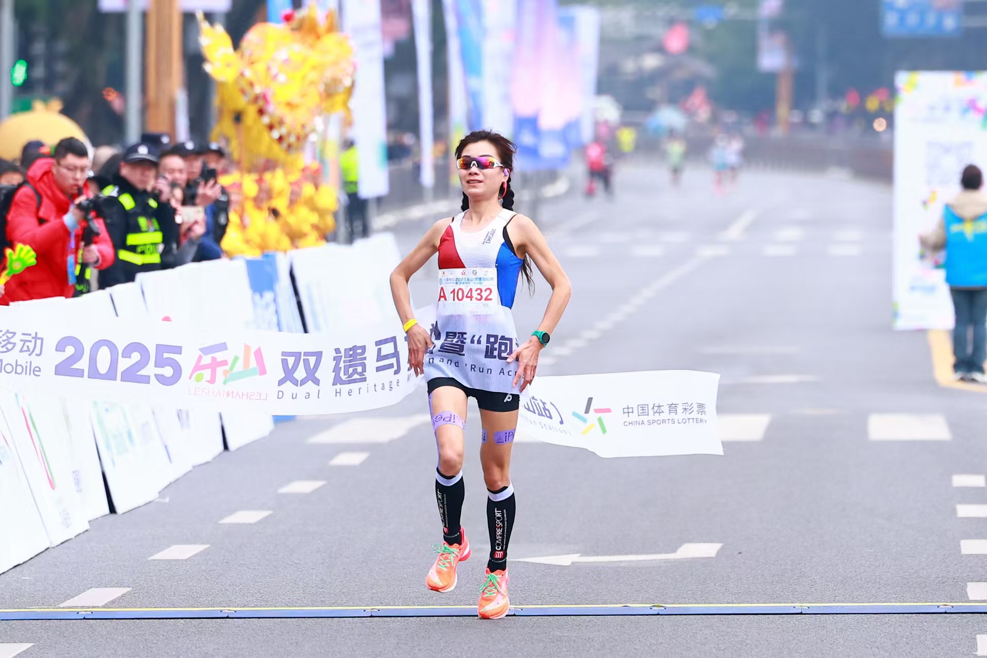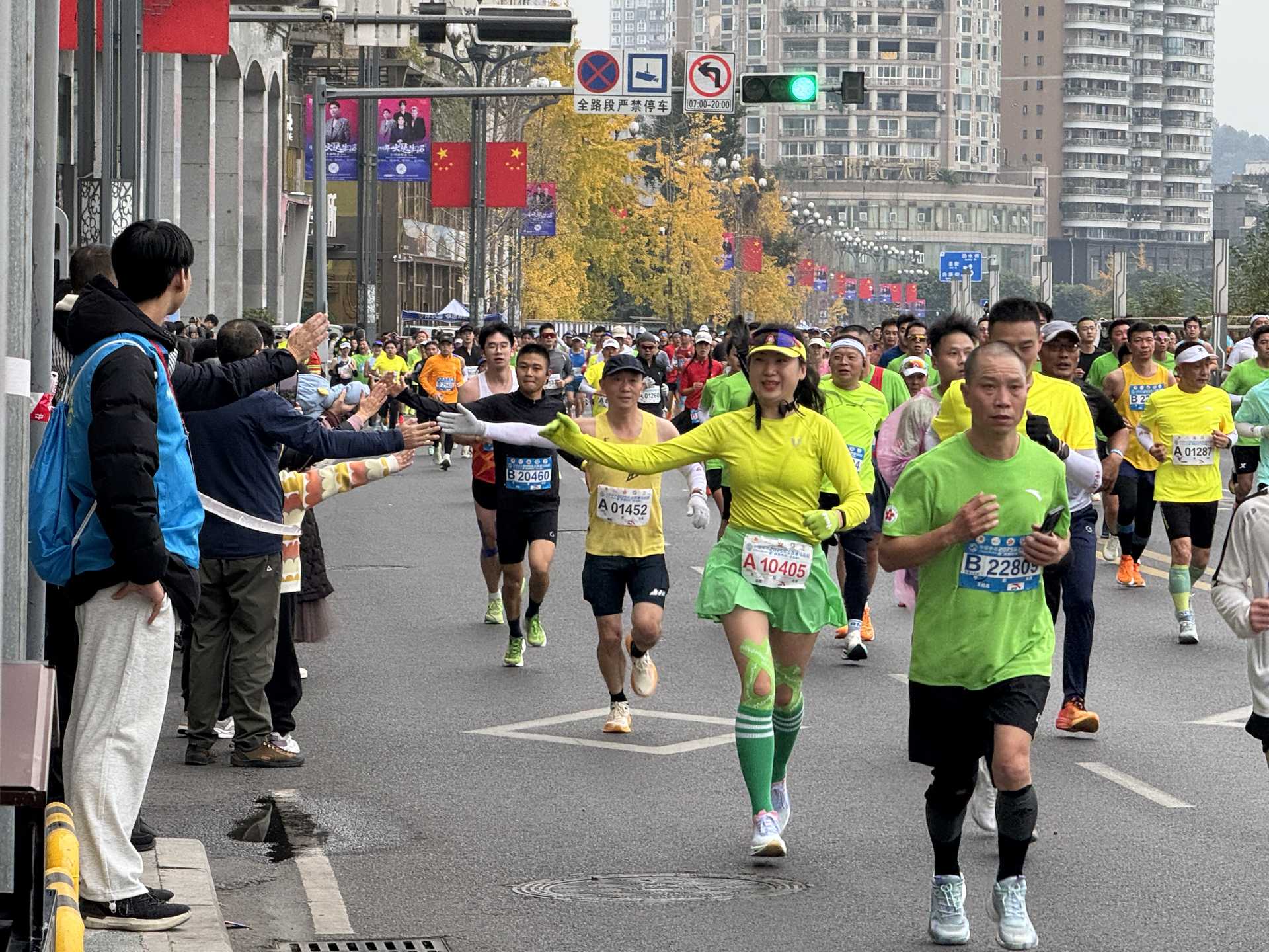 赛道化身为展现乐山深厚底蕴与市民热情的流动舞台。沿途,热情的乐山市民早早守候,为选手们送上最真挚的加油与掌声。“雄起!”“加油!”呐喊声此起彼伏,汇聚成支撑跑者前进的强大动力。