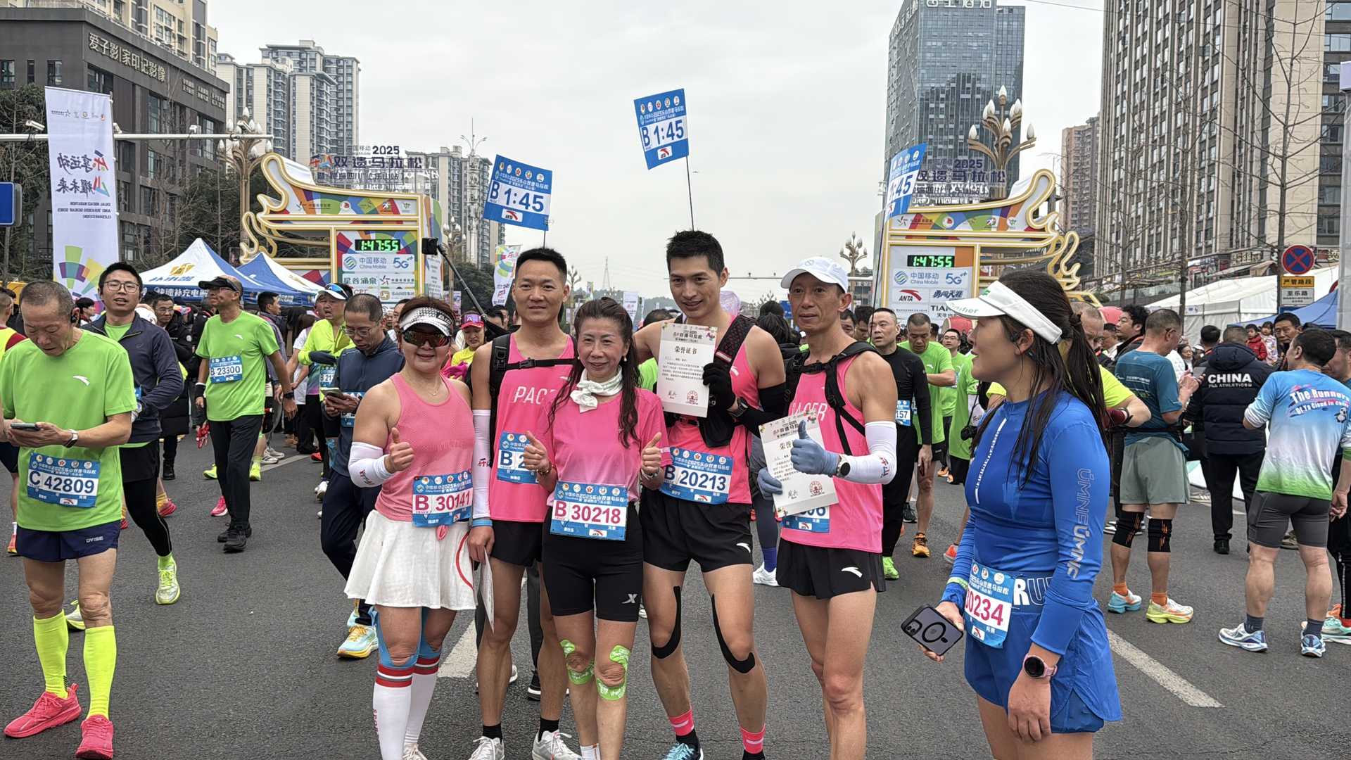 清晨,寒意掩不住澎湃的热情。世豪广场及周边早早汇聚着参赛选手,他们或进行热身,或合影留念,脸上写满期待与自信。跑团旗帜飘扬,色彩斑斓的参赛服汇成一片跃动的海洋,激昂的音乐与主持人的呐喊将现场气氛推向高潮,共同等待鸣枪时刻。